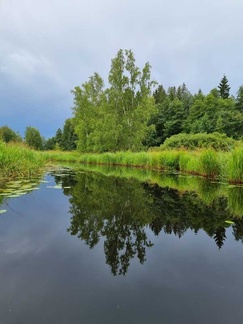 Auringon paistaessa lähtö Kernaalanjärven uimarannalta josta kiemurtelevaan Räikälänjokeen.