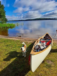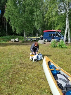 Kahden kanootin ja kahden kajakin voimin jatkoimme Kuotolanjärven kautta Viralanjärveen josta vielä pätkä jokea ja sitten laavulle evästelemään.
