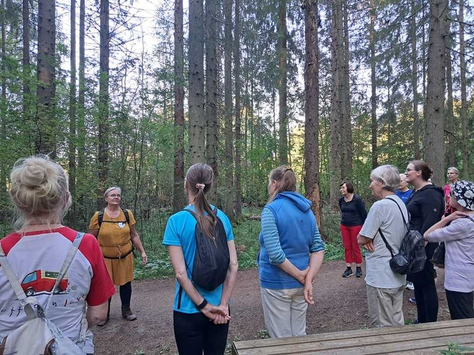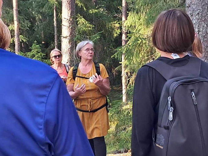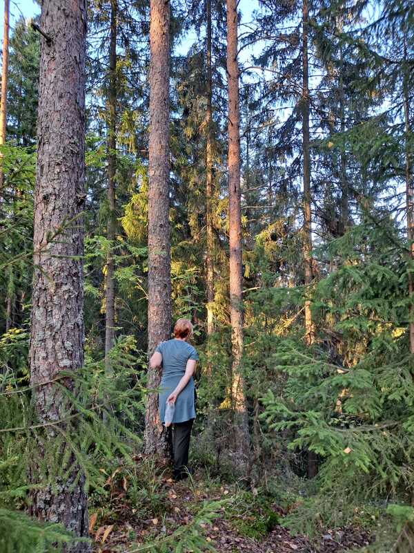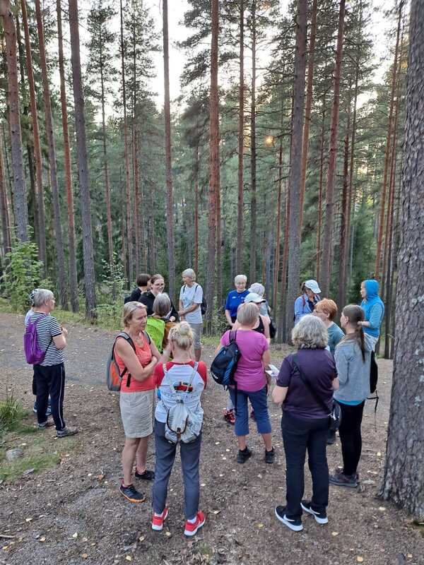 Sirpa kertoi osallistujille metsän hyvinvointia lisäävistä vaikutuksista ja kävelyn lomassa keskusteltiin luontosuhteesta. Teimme harjoitteita miten luonnon elementtejä voi käyttää murheiden käsittelyyn ja miten lisätä omaa positiivista ajattelua ja kiitollisuutta.