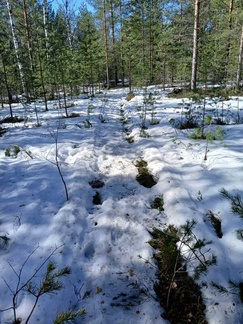Aurinkoinen lauantaiaamupäivän polkujuoksulenkki neljän juoksijan voimin lentokentän maastoissa. Polkujen kunto vaihtelu lumisista ja jäisistä täysin suliin. Tunnin aikana saimme kasaan 6,5 kilometriä juoksua sekä peränpitäjä myös puolikassillista roskia. Muovipussi kerättiin täyteen lopuksi parkkipaikan kupeesta.