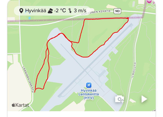 Huikean isolla (18+1) Hyvinvointia ulkoilusta -porukalla käytiin tänään sauvakävelylenkillä lentokentän ympäristössä. Sääennusteen mukaan auringonkin olisi pitänyt näyttäytyä, mutta eipä näkynyt, vaikka sitä varten Aurinkolatu -pohjalle mentiinkin.