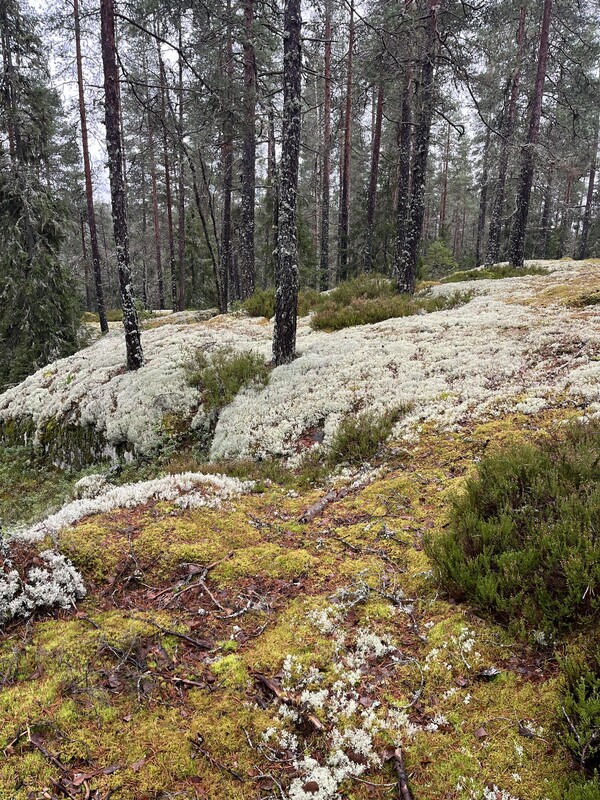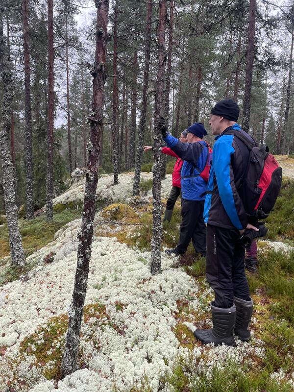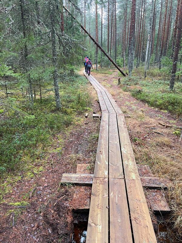 Uimarannan P-paikalle saapui vain viisi tapahtuman osanottajaa, ehkäpä potentiaaliset ulkoilijat liikehtivät muualla. Patikoimme polkua pitkin Pikku-Usmin tuntumaan ja sen sivuuttaen nousimme ulkoilureitille, joka johtaa Pikku-Karhulampea kohti. Poikkesimme ulkoilureitiltä polulle kohti Suoniittyä. Metsässä tapasimme pariskunnan, joka ulkoilutti kahta koiraa. Vaihdoimme heidän kanssaan kokemuksia Usmin metsissä liikkuvista eläimistä ja pohdimme mm. suden ja karhun mahdollista esiintymistä alueella.