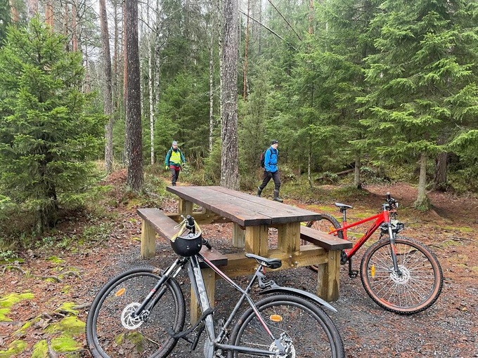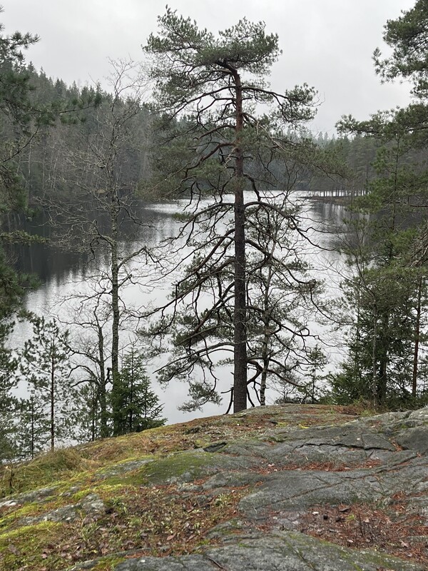 Kahvittelun ja evästelyn jälkeen jatkoimme Iso-Kypärälammelle, jonka laavun kohdalta nousimme Piilon tielle. Yksittäisiä ulkoilijoita näkyi olevan liikkeellä ja jututimme useampaa kulkijaa, kun tuttujakin oli heidän joukossansa. Piilolammelle pohjoispäähän saavuimme kalliopolkua pitkin. Epäviralliselle nuotiopaikalle oli pieni seurue tehnyt tulet ja hämmästelin mielessäni myös klapimäärää, joka oli kannettu ja pinottu sinne. Meitä on moneksi!