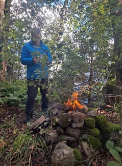 Melasimme taukosaarta kohti mukavahkossa aallokossa vastatuuleen. Hyvin sujui kun otti rauhallisesti. Saaressa on taukopaikka menneestä maailmasta, hieman oli jo käytön puutteessa pusikoitunut, mutta rantautuminen ja taukoiluu onnistui hyvinkin.