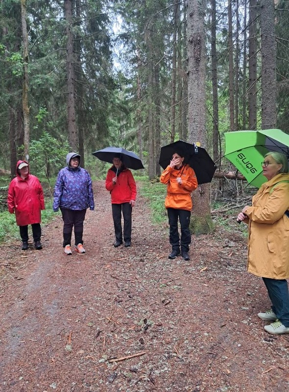 Metsämieli -kirjailijan ja -menetelmän kehittäjän Sirpa Arvosen johdolla vietimme 12 +1 osallistujan kanssa puolentoista tunnin session Sveitsin luonnonpuistossa hakien voimavaroja itse kunkin arkeen ja mieleen. Kevyt kesäsade toi runsaasti erilaisia tuoksuja ja raikasti niin ilmaa kuin mieltäkin.