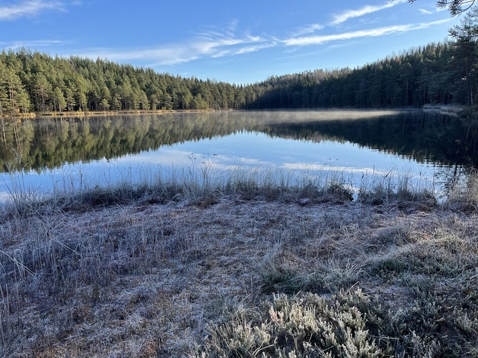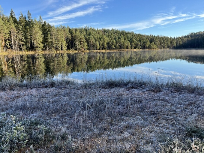 Aurinkoisena sunnuntaipäivänä patikoitiin Usmin upeissa maisemissa 20 ulkoilijan voimin. Hyvinkääläisiä tuosta joukosta oli puolet, toinen puoli retkeläisistä oli saapunut Järvenpäästä. Alkumatka kuljettiin tietä pitkin Kypäräsuon reunaan ja edelleen polkuja seuraten Iso-Kypärälammen länsipuolta aina Kiiskilammen takalenkin uralle. Taukotulilla istuskelimme Kiiskilammen nuotiopaikalla nauttien eväistämme. Jatkoimme matkaamme tieuraa ja polkuja pitkin Piilolammelle, jonka pohjoispäässä ihastelimme hetken kalliolta avautuvaa näköalaa. Piilolta käännymme kohti Kaksoislampia ja palailimme Latu-Miiluun kuljettuamme kaikkiaan noin 10 kilometrin pituisen lenkin, aikaa kului vajaa neljä tuntia. Matkalla tapasimme lukuisia muitakin ulkoilijoita. Sykähdyttävää oli myös nähdä majalle menomatkalla tiellä ukkometso. Tämä oli varsin tyyni, kun lähestyin sitä autolla. Ukko asteli rauhassa auton edessä tietä pitkin melkein Tiikerinsuon risteyksestä aina Aarinnansuon suuntaan erkaantuvan polun kohdalle asti. Sain napattua homenokasta useita kuvia auton tuulilasin lävitse.