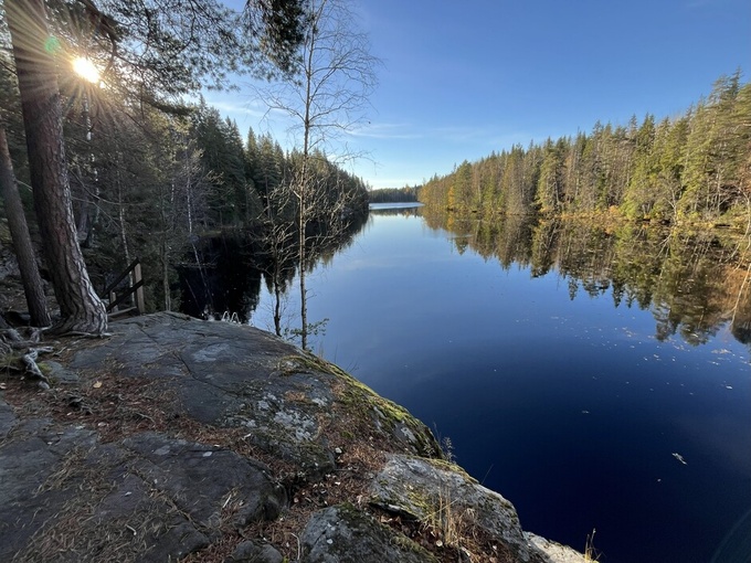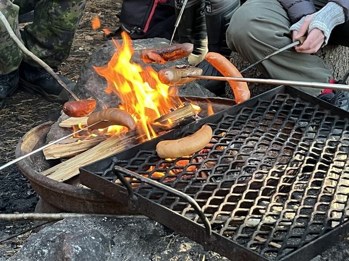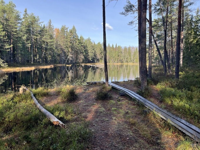Aurinkoisena sunnuntaipäivänä patikoitiin Usmin upeissa maisemissa 20 ulkoilijan voimin. Hyvinkääläisiä tuosta joukosta oli puolet, toinen puoli retkeläisistä oli saapunut Järvenpäästä. Alkumatka kuljettiin tietä pitkin Kypäräsuon reunaan ja edelleen polkuja seuraten Iso-Kypärälammen länsipuolta aina Kiiskilammen takalenkin uralle. Taukotulilla istuskelimme Kiiskilammen nuotiopaikalla nauttien eväistämme. Jatkoimme matkaamme tieuraa ja polkuja pitkin Piilolammelle, jonka pohjoispäässä ihastelimme hetken kalliolta avautuvaa näköalaa. Piilolta käännymme kohti Kaksoislampia ja palailimme Latu-Miiluun kuljettuamme kaikkiaan noin 10 kilometrin pituisen lenkin, aikaa kului vajaa neljä tuntia. Matkalla tapasimme lukuisia muitakin ulkoilijoita. Sykähdyttävää oli myös nähdä majalle menomatkalla tiellä ukkometso. Tämä oli varsin tyyni, kun lähestyin sitä autolla. Ukko asteli rauhassa auton edessä tietä pitkin melkein Tiikerinsuon risteyksestä aina Aarinnansuon suuntaan erkaantuvan polun kohdalle asti. Sain napattua homenokasta useita kuvia auton tuulilasin lävitse.