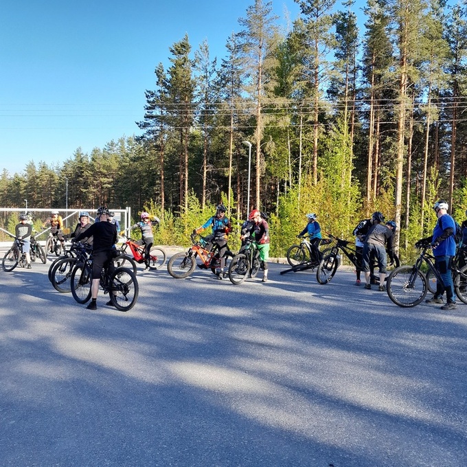 Matkaa taiteiltiin aika tarkkaan 20km, johon aikaa meni 2h ja 15min. Henkilövahvuus oli lähdössä 1+19, mutta yksi sähköpyörä joutui jättämään leikin kesken alkumatkasta mahdollisen moottoriongelman vuoksi. Loppuporukalla jatkettiin reissu onnistuneesti maaliin ja nautittiin mitä mainioimmasta maastopyöräilyillasta.
