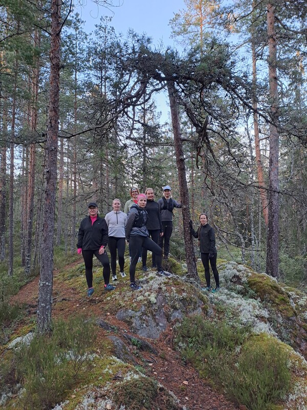 Polkujuoksijat nauttivat tänään syksyistä poluista 6+2 juoksijan voimin. Hienosti saimme sateisen päivän jälkeen nauttia illan viimeisistä auringon säteistä. Sade oli saanut juuret ja kivet liukkaiksi, mutta varovaisella askeleella pysyimme pystyssä varsin vaihtelevassa maastossa.