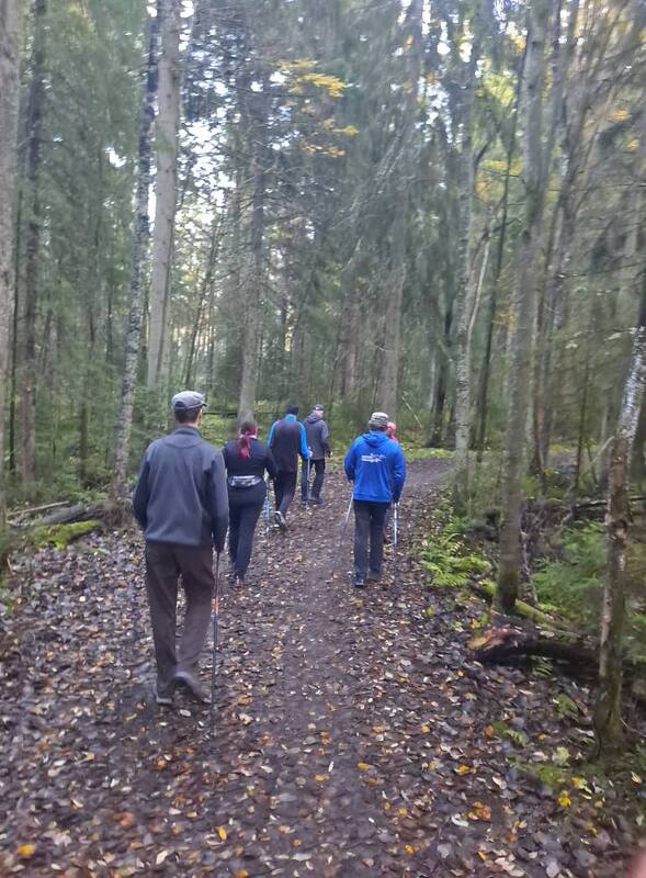 Testissä oli sauvakävelyn uusi innovaatio Sisu Grip sauvat. Sauvojen erityis ominaisuus on niiden nivelystävällisyys.