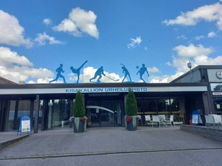 Kisakallion urheiluopistolla pidimme ansaitun tauon. Eväät maistuivat rannalla, ja maatauko toi lepohetken melontaan. Yksi nälkäinen suuntasi lounaalle urheiluopiston ravintolaan.