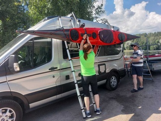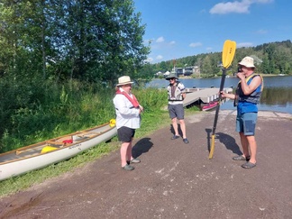 Aamu alkoi Kalevin pihassa, jossa kanoottien, kajakkien ja muiden varusteiden pakkaus sujui ripeästi hyväntuulisessa porukassa. Mukana oli kuusi melojaa – yksi kanoottikaksikko, yksi kajakkikaksikko sekä kaksi yksikkökajakkia. Kun kaikki oli valmista, kaksi autollista retkeläisiä suuntasi Lohjalle, Hiidensalmen veneluiskalle.