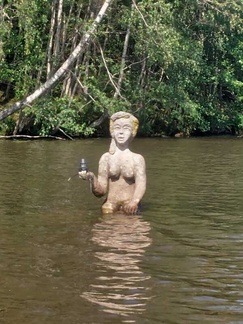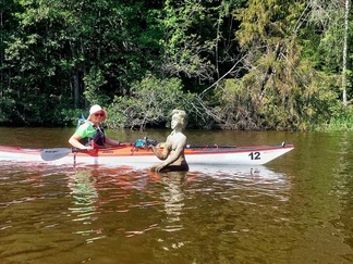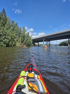 Kalusto saatiin vesille ilman kommelluksia, ja pian keulat jo halkoivat vedenpintaa. Reitti kulki kohti Kisakallion urheiluopistoa. Matkalla pääsimme kokemaan hieman erikoisempaakin nähtävää, kun alitimme Turku-Helsinki-moottoritien – ja moottoritien alla oli ihastuttava, kenties merenneitoa esittävä veistos karimerkkinä.