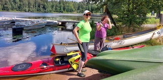 Paluu sujui samaa reittiä lievässä vastatuulessa. Lämmin ja aurinkoinen sää sai hikikarpalot otsalle, ja matkalla pidettiinkin riittävästi juomataukoja, jotta jaksettiin loppuun asti. Jonkun verran oli moottoriveneitäkin matkan varrella ja niitä väistettiin melomaan rannan läheisyyteen. Yhteensä kilometrejä vesillä tuli noin 16.