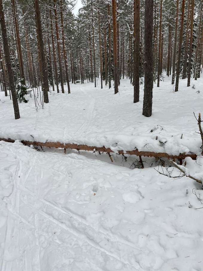 Lähtöpaikalla ei kuitenkaan näkynyt ristin sielua, joten päädyin tekemään omat ratkaisuni. Olisiko huono talvi tai mahdollinen nollakeli pelottanut osallistujia? Tuo reitti Kiistaveikkojen majalle tuntui houkuttelevalta. Hiihtosillan kupeella havaitsin, ettei tuotakaan reittiä ollut ajettu, mutta kun reitille kuitenkin muutamat suksenjäljet näyttivät katoavan, päätin itsekin yrittää onneani. Hiekkakuopan reunalla reitti kulki välillä polun pohjalla, välillä vanhaa latu-uraa pitkin. Kun ehdin Rutikalta tulevan tien viereen, havaitsin sen auratuksi, mikä mielestäni selitti sen, miksei tänä talvena tuota latuyhteyttä ollut avattu.